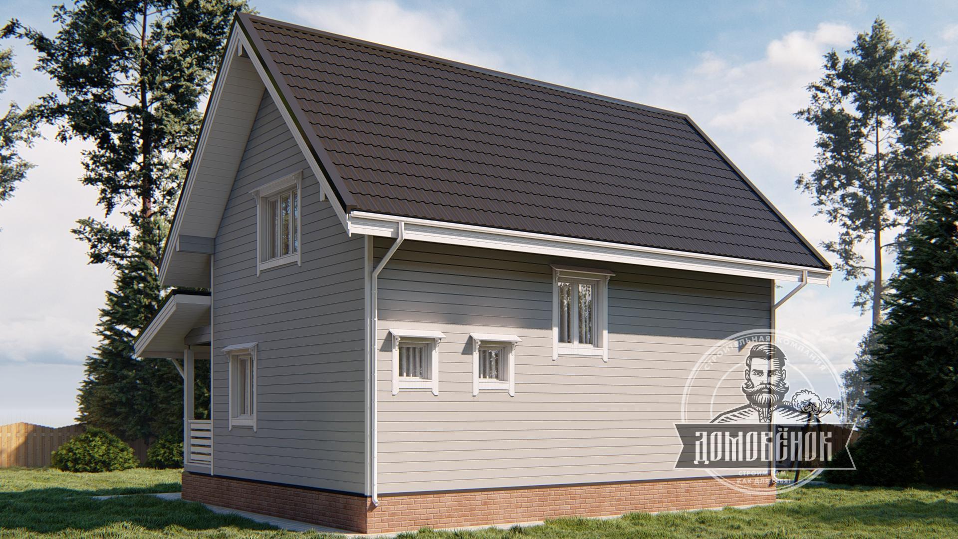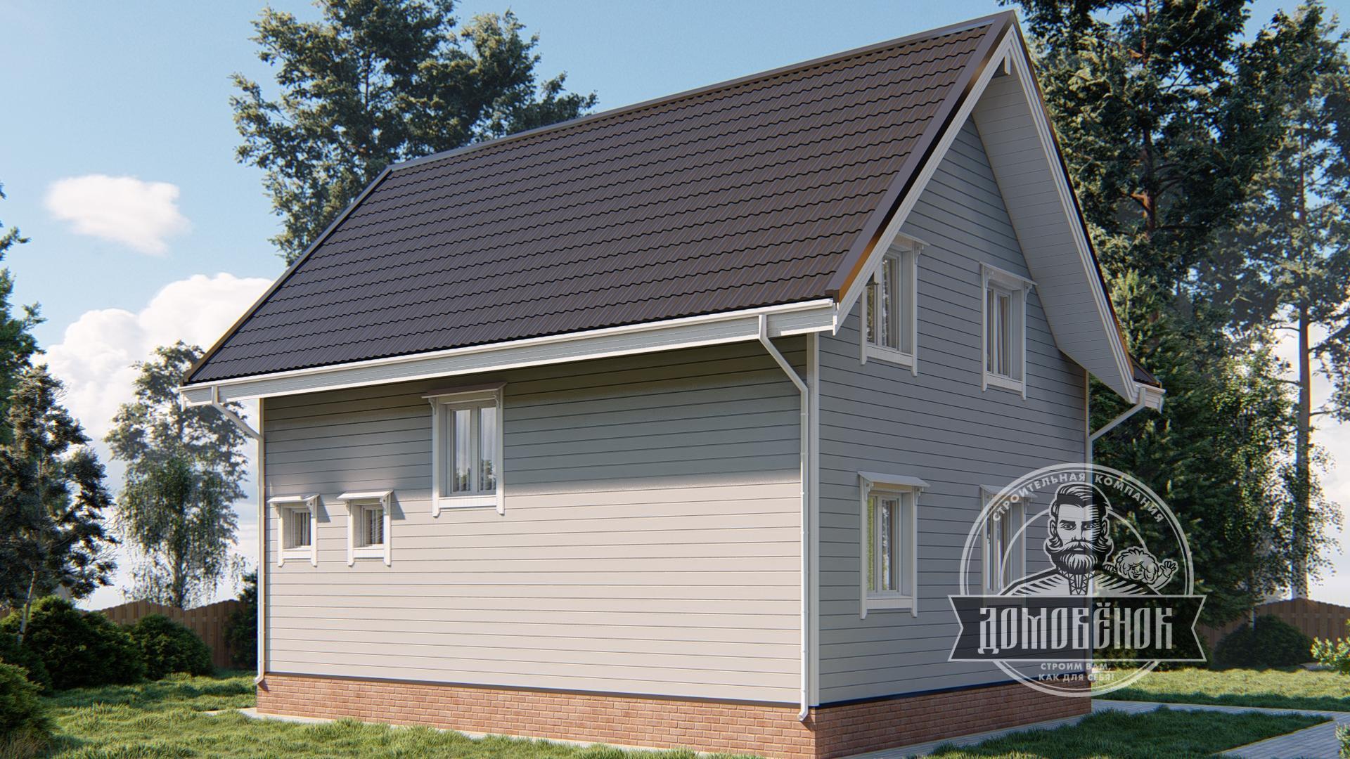 Каркасный дом проект К-100 - оптимальный вариант для загородного участка. Он имеет этажность: 1,5 этажа и размеры 7х9 м., что позволит построить его практически на любой территории.